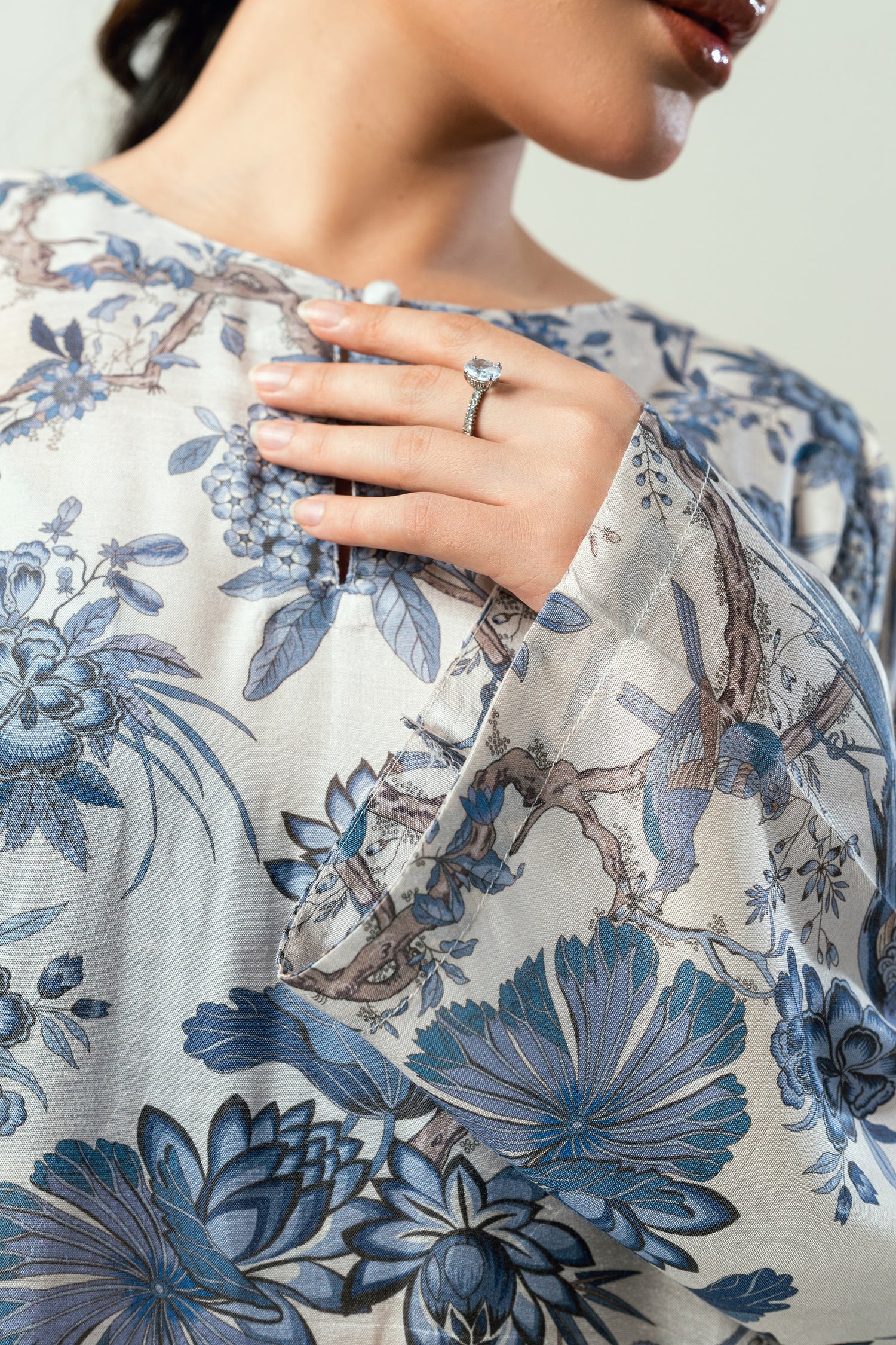 Blue Blossom- Ivory & powder blue printed 2 piece